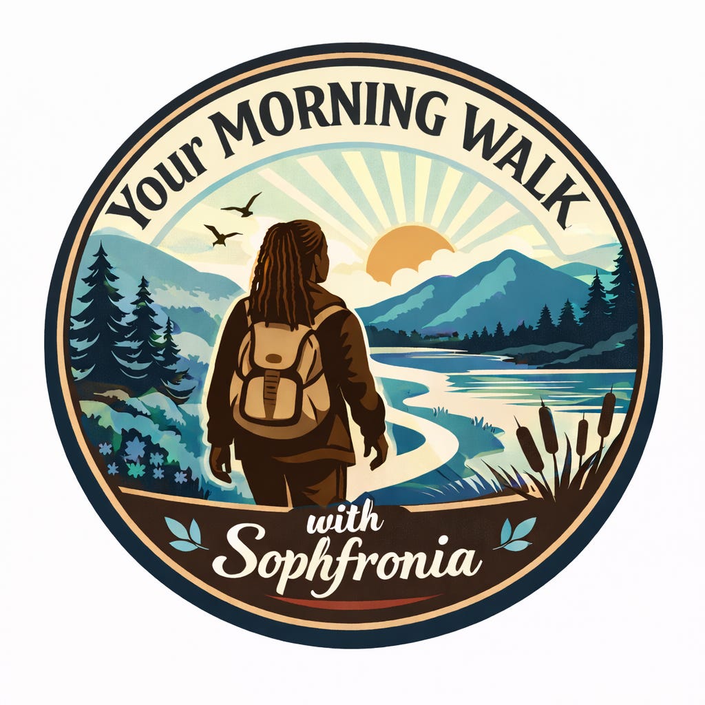 Your Morning Walk with Sophfronia is a series of brief weekly videos featuring author and contemplative thinker Sophfronia Scott as she offers observations on living life with love, joy, and inspired intention.